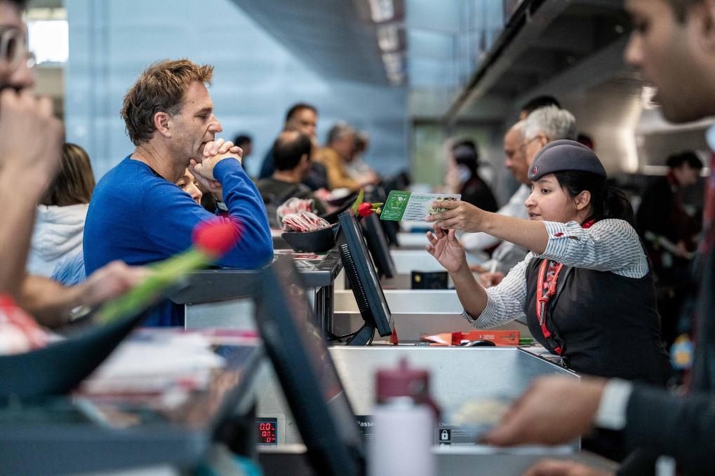 12月20日,旅客在美国旧金山国际机场办理值机手续。新华社发(朱子于摄)